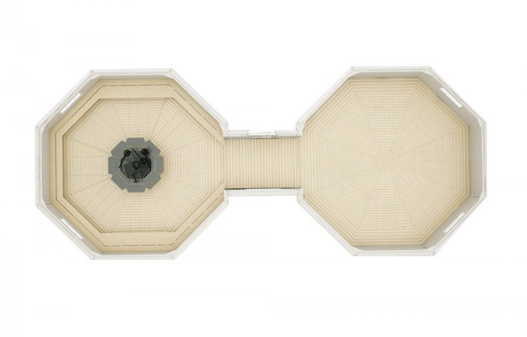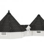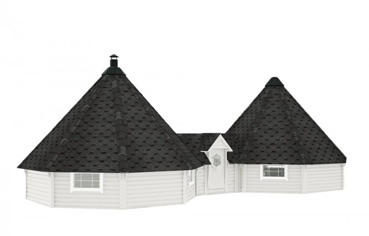 High-quality materials ensure the longevity of a grill house and easy use. Cabin walls are made of rounded spruce boards with the dimensions 45 x 145 mm. A roof is covered with bitumen shingles (different colors can be selected), and there are nine double glazed windows, four of which open. Besides that, door is decorated with an original hexagonal window. Also there are seven benches in the cabin; two of these benches easily transform into holding benches: just turn over the additional board. Floor is easily assembled from separate components.