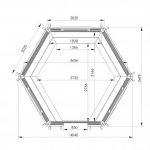 People 12-15 persons Timber Spruce Shape Hexagon Room 1 Inside area 9.2m2 Total height 3062mm Wall height 1159mm Floor thickness 18mm Roof thickness 18mm Wall thickness 45mm External dimension 3760 x 3256 mm Door size 782 x 1630 mm Window size 880 x 510 mm  - STANDARD SET