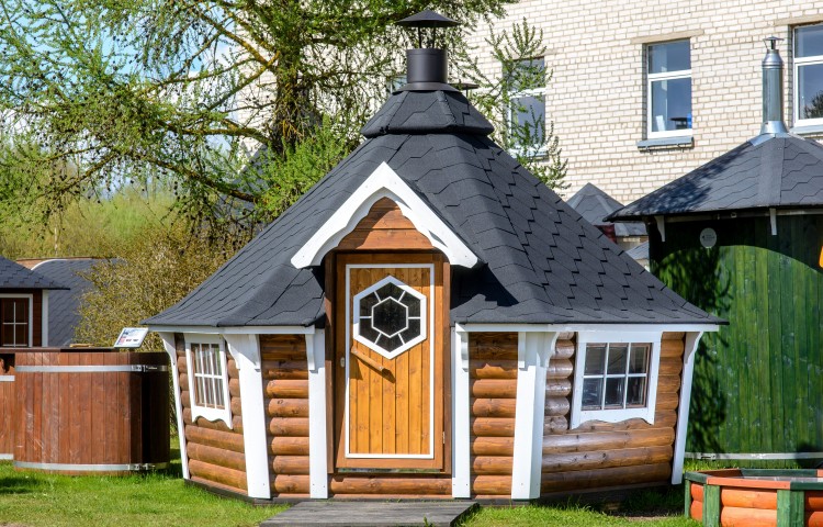 Design, ergonomics and more comfortable sitting places let you fall in love with the product immediately! Grill cabin 9.2 m2 with sloping walls will help your garden look amazing. High-quality materials ensure the longevity of a grill house and easy use. Cabin walls are made of rounded spruce boards.