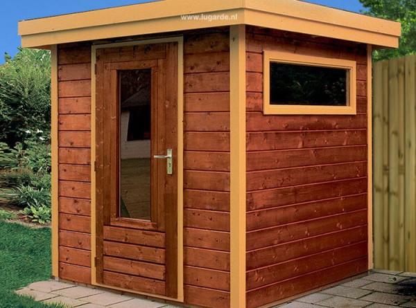 This low roof (≤ 250 high) summerhouse was designed by the founder’s son. It combines all aspects of a modern-day log cabin. Its 3.2 m² offers plenty of storage space