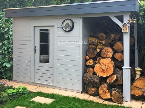Summerhouse PR4 with a low roof (≤ 250 cm). This classic style summerhouse with a flat roof and a side canopy offers you everything you expect from a summerhouse. Whether you are looking for an extra storage space or a hobby den, this is your ideal choice. Moreover, it will be a great fit for both a small and a large garden.